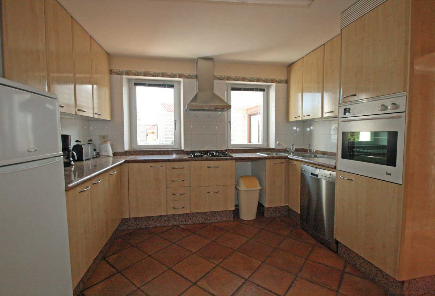 Die geräumige Einbauküche ist komfortabel ausgestattet mit Ceran-Gaskochfeld, elektrischem Backofen in Augenhöhe, Granitarbeitsfläche, Geschirrspülmaschine, Kühlschrank mit großem Gefrierfach, Kaffeemaschine, Toaster, Wasserkocher usw.