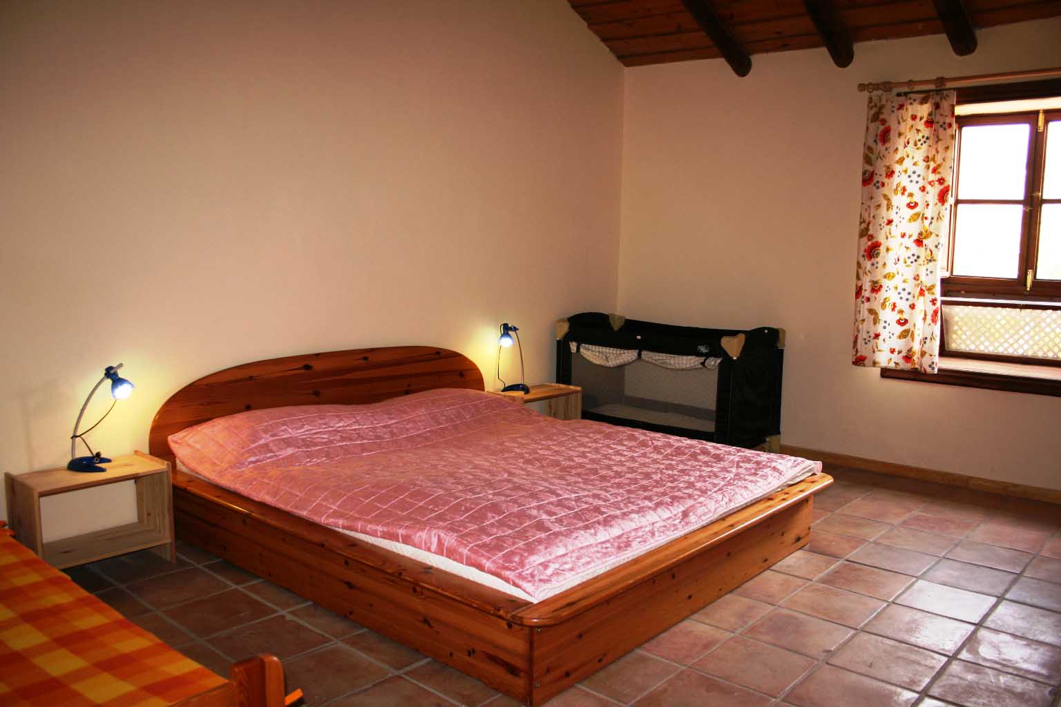 mit Doppelbett (180 x 200 cm), Einzelbett (90 x 200 cm) und Babybett (60 x 120 cm).